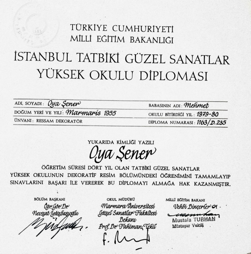 alan sanatçı, oldukça donanımlı öğrenciler mezun veren okuldan dekoratör ressam olarak mezun oldu.